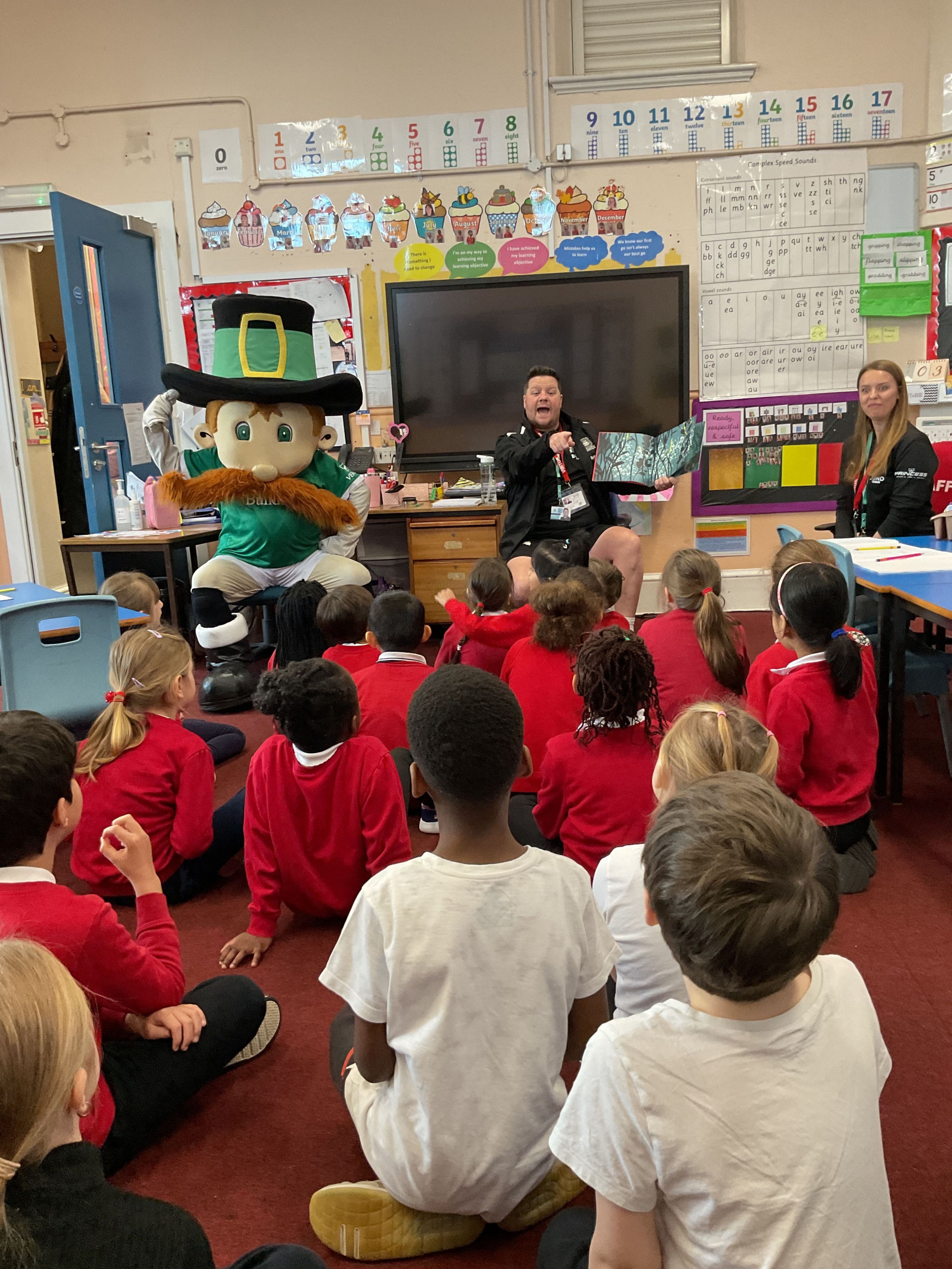 This week, the children at Stuart Hall Primary Academy have thoroughly enjoyed listening to stories read by Corbin from Plymouth Albion Rugby Club, Kadus, Tim, and Thalia from Plymouth Argyle Football Club, as well as Mrs. Kelly (PTA and Governor), Mrs. Lang, and Mr. Thorpe.