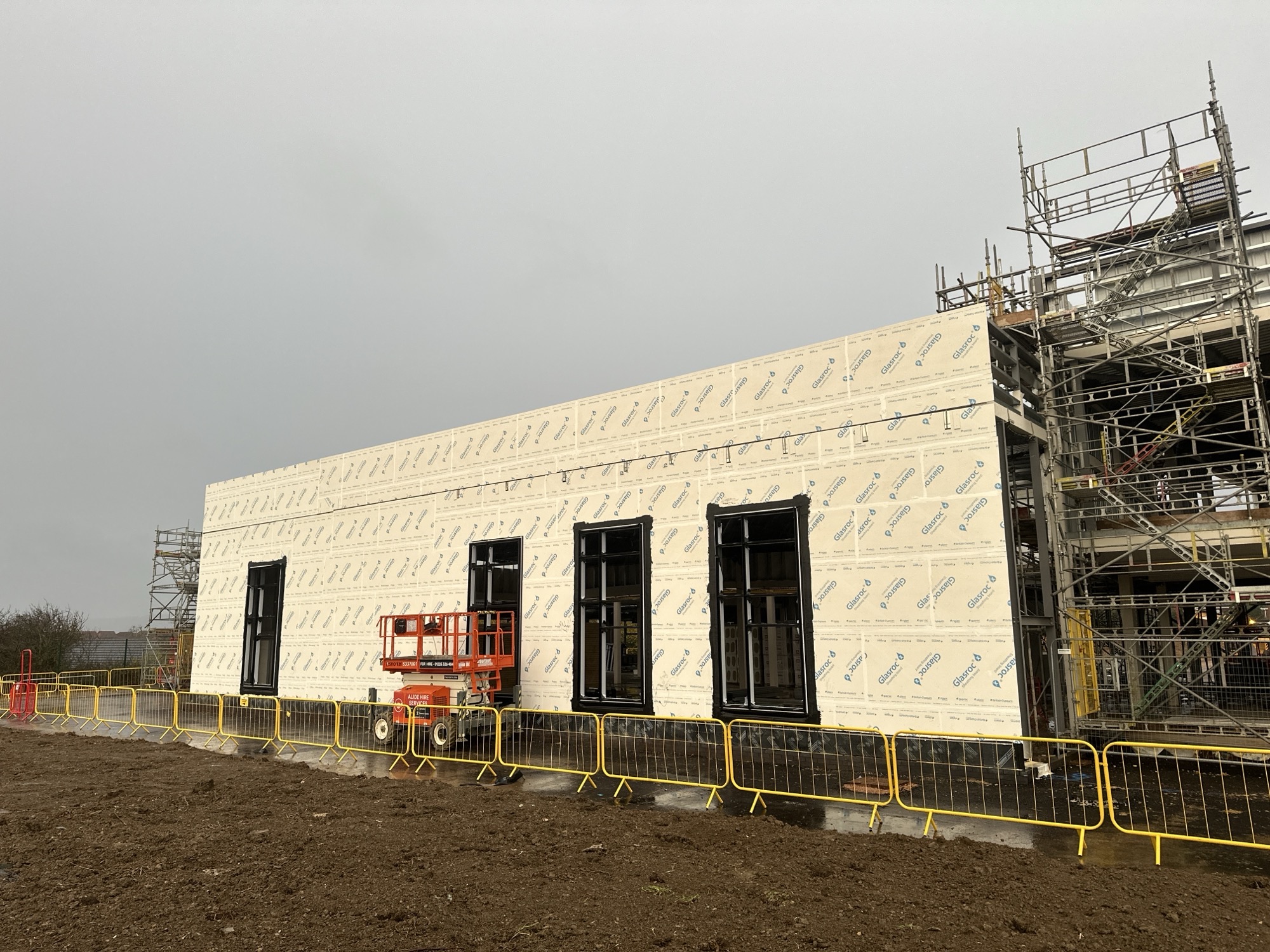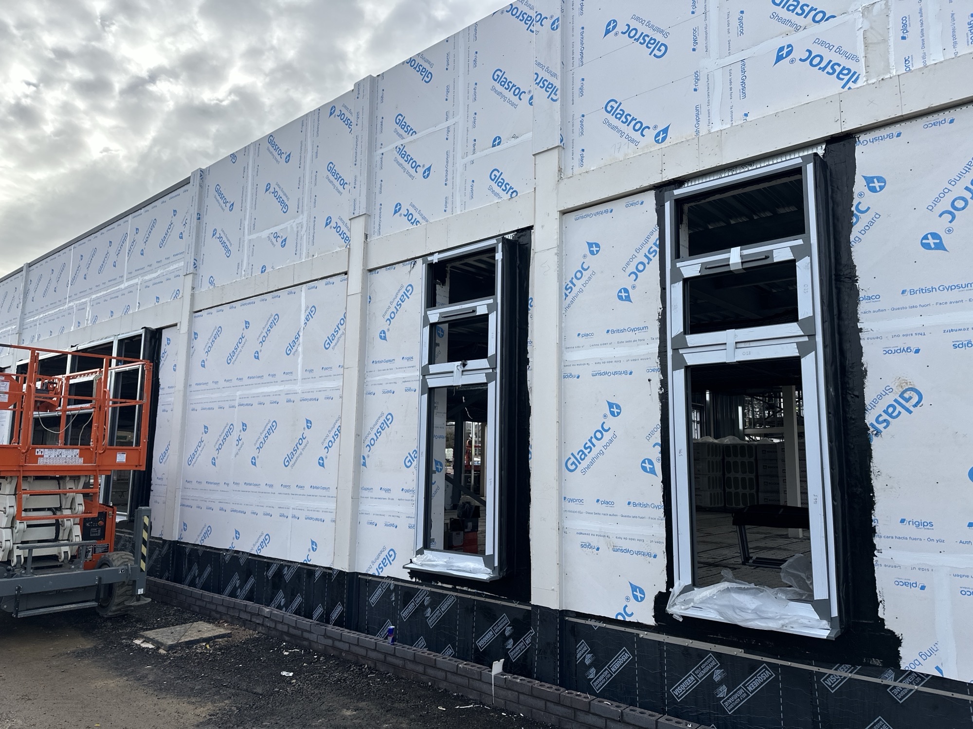 - Windows & Frames: SFS to the building perimeter is ready for windows, and frames for windows and curtain walling have been installed in the hall and primary school.